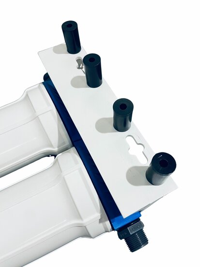 The spacers are specially designed for situations where a Pre-Filter (such as the Inline Pre-Filter Combi) is mounted in combination with a large Inline filter housing. Because of the extra depth of the housing, a distance gap to the wall would otherwise occur. With these spacers, this is neatly compensated and the system remains stable and properly aligned.